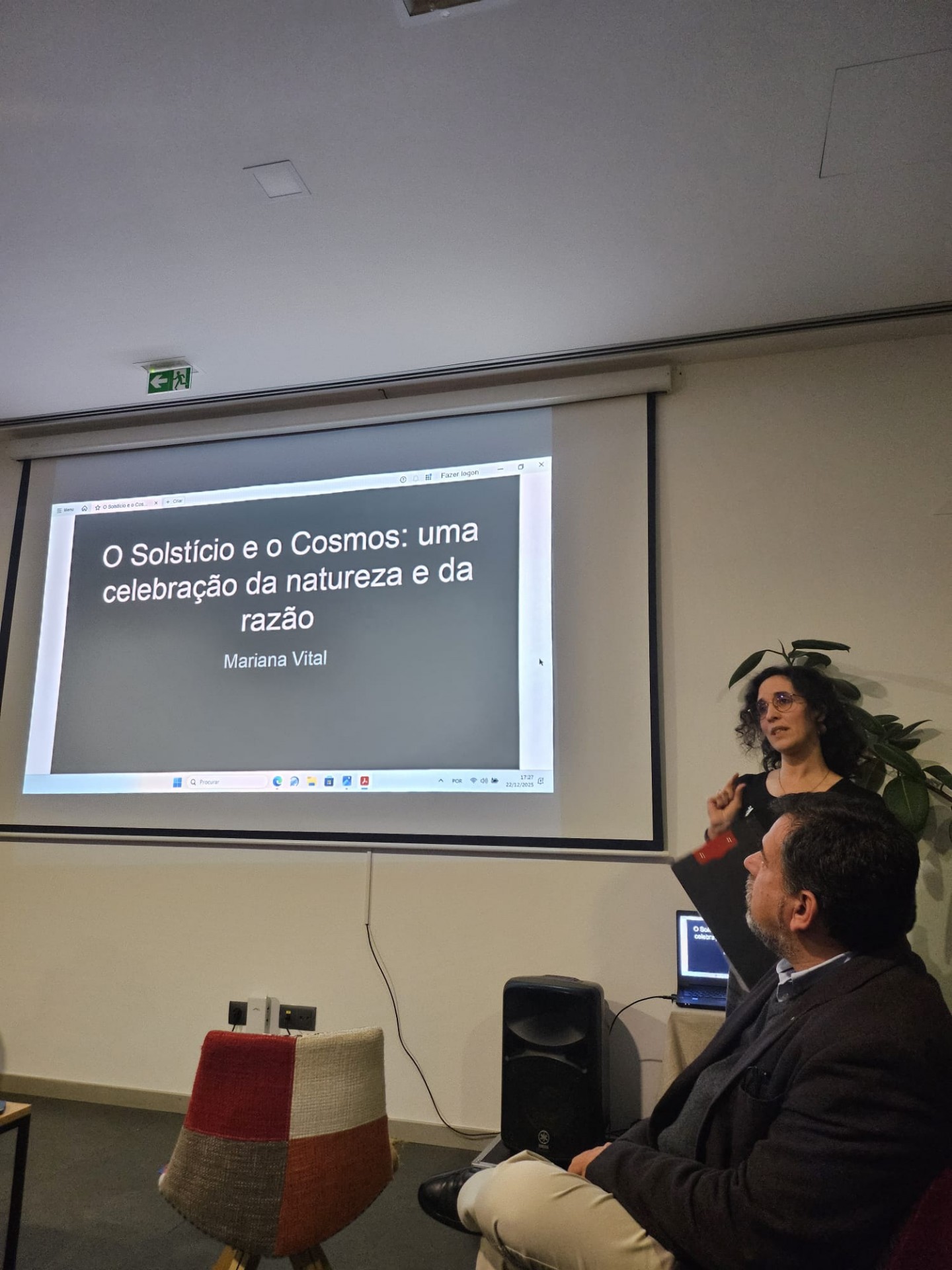 Seguiu-se a intervenção da Mestre Mariana Vital, com o tema “O Solstício e o Cosmos: uma celebração da natureza e da razão”, trazendo uma perspetiva ligada aos ciclos naturais, à astronomia e à relação do ser humano com o cosmos.