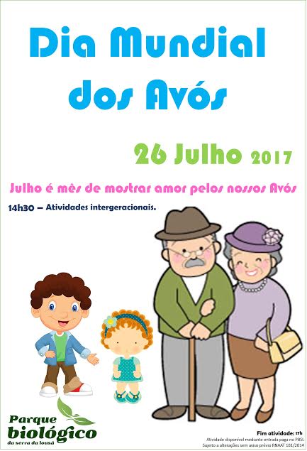 No dia 26 de julho comemora-se o Dia dos Avós, e o Parque Biológico da Serra da Lousã, em Miranda do Corvo, promove atividades lúdicas para avós e netos, promovendo o convívio intergeracional e a troca de experiências de outros tempos. As atividades têm início pelas 14h30 e terminam às 17h00, e estão disponíveis para todos que visitem o Parque, nesse dia.