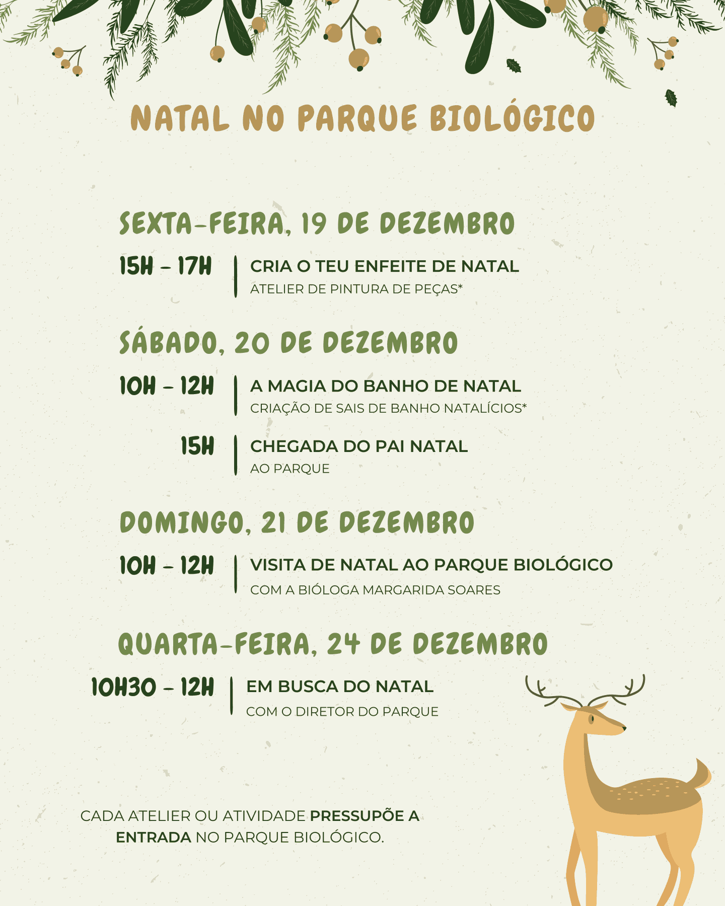 Nota: Cada atelier ou atividade pressupõe a entrada no Parque Biológico.