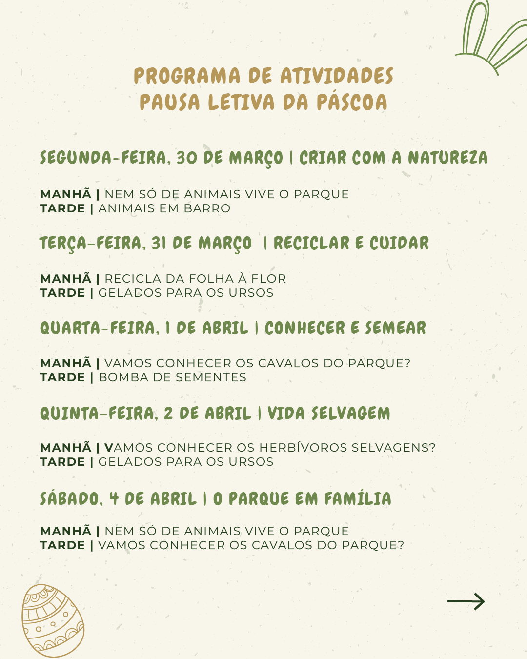 O Parque Biológico da Serra da Lousã prepara uma programação especial para as férias da Páscoa, entre 30 de março e 10 de abril, com um conjunto diversificado de atividades educativas, criativas e de contacto direto com a natureza, pensadas para crianças, famílias e visitantes de todas as idades.