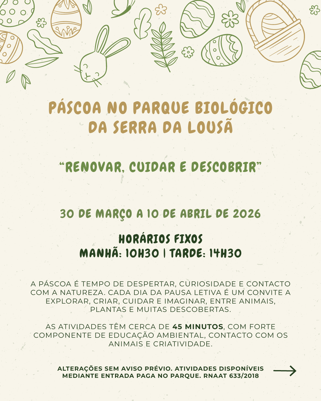 O Parque Biológico da Serra da Lousã prepara uma programação especial para as férias da Páscoa, entre 30 de março e 10 de abril, com um conjunto diversificado de atividades educativas, criativas e de contacto direto com a natureza, pensadas para crianças, famílias e visitantes de todas as idades.
